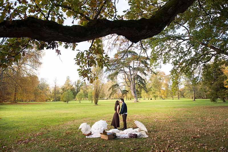 Your engagement picnic at the gardens of Versailles, by contrast, offer quiet paths, hidden groves, and secluded fountains where the moment belongs only to you two. Eiffel Tower proposals are expected; they’ve become a ritual many couples follow. While still meaningful, they can feel predictable.